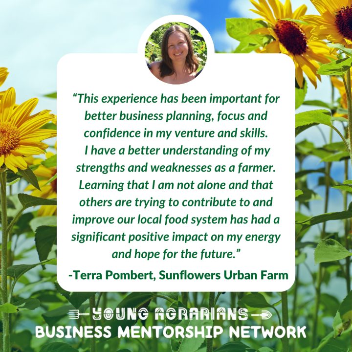 As a participant in this program you will receive 30 hours of one-on-one mentorship with an experienced farmer, a financial and marketing web series specifically for farmers, profile on the YA website and social media and opportunities for peer networking.