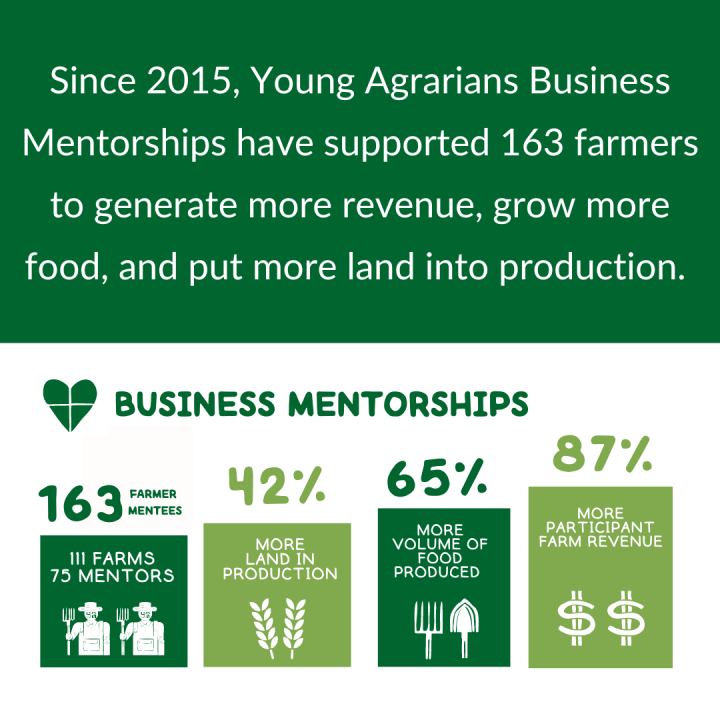 As a participant in this program you will receive 30 hours of one-on-one mentorship with an experienced farmer, a financial and marketing web series specifically for farmers, profile on the YA website and social media and opportunities for peer networking.
