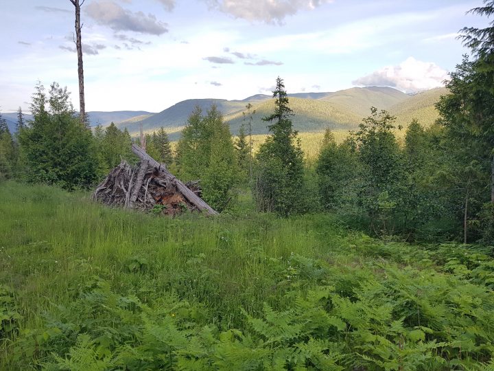 The 35 acre parcel is located in Beasley, about a 10 minute drive from Nelson. The land available for farming is south facing with a gentle slope and is mostly forested with a meadow that has perennial grasses, wildflowers, and ferns. There is also a flat area at the bottom of the slope that has standing water in the early spring, and a boggy/swamp area up above the potential farm site. In general the meadow is open and has a lot of light. The land is bordered on all sides by forest. There is a road allowance that splits the property, which local residents use for walking and snowshoeing. There are no fences on the property and there are lots of animals, like elk, deer, and rabbits that pass through the property on a regular basis. This area has been logged twice (last time was ~25–30 years ago) and has not been cultivated before.