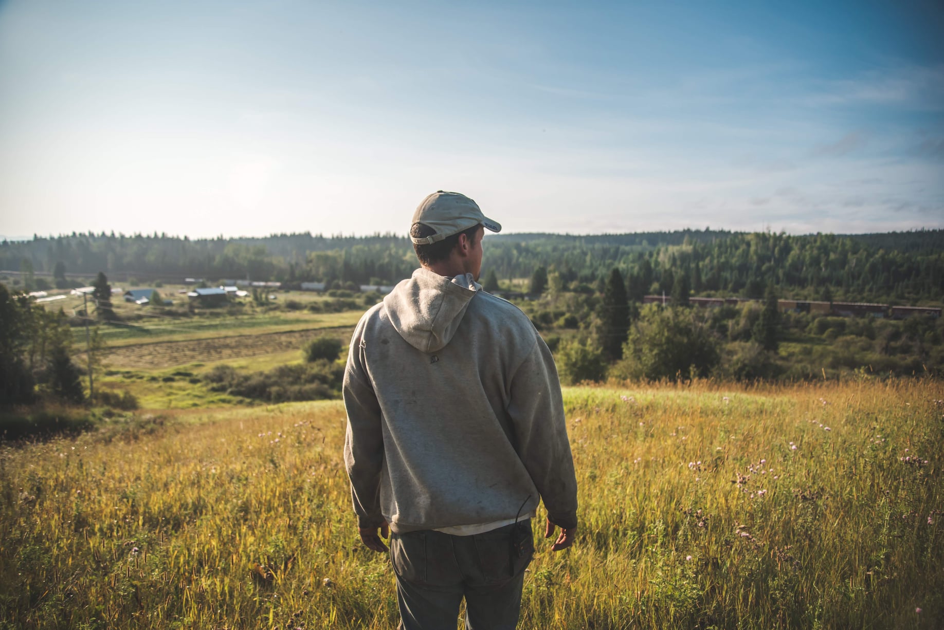 Andrew looking over his farm via a large hill on the property.