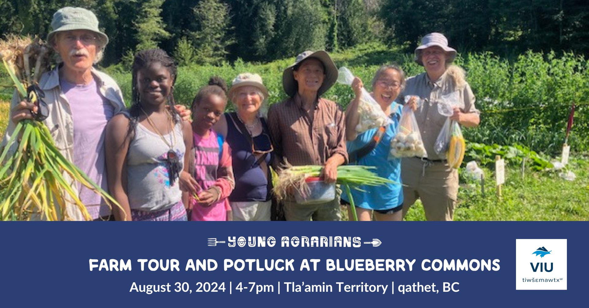 You’re invited to a farm tour and potluck at Blueberry Commons in qathet (Powell River), BC, in collaboration with Vancouver Island University! The 16 acres of gardens, forest and meadows have a long farming history in the community. For more than 50 years the Clancy family grew berries, fruit and vegetables and raised animals as an integral part of the Wildwood farming scene. Today, they have nearly an acre of blueberry crop, and a thriving 2 acre market garden that supplies food to the local community. Join us for an evening of learning and connecting, and stay for a potluck meal!