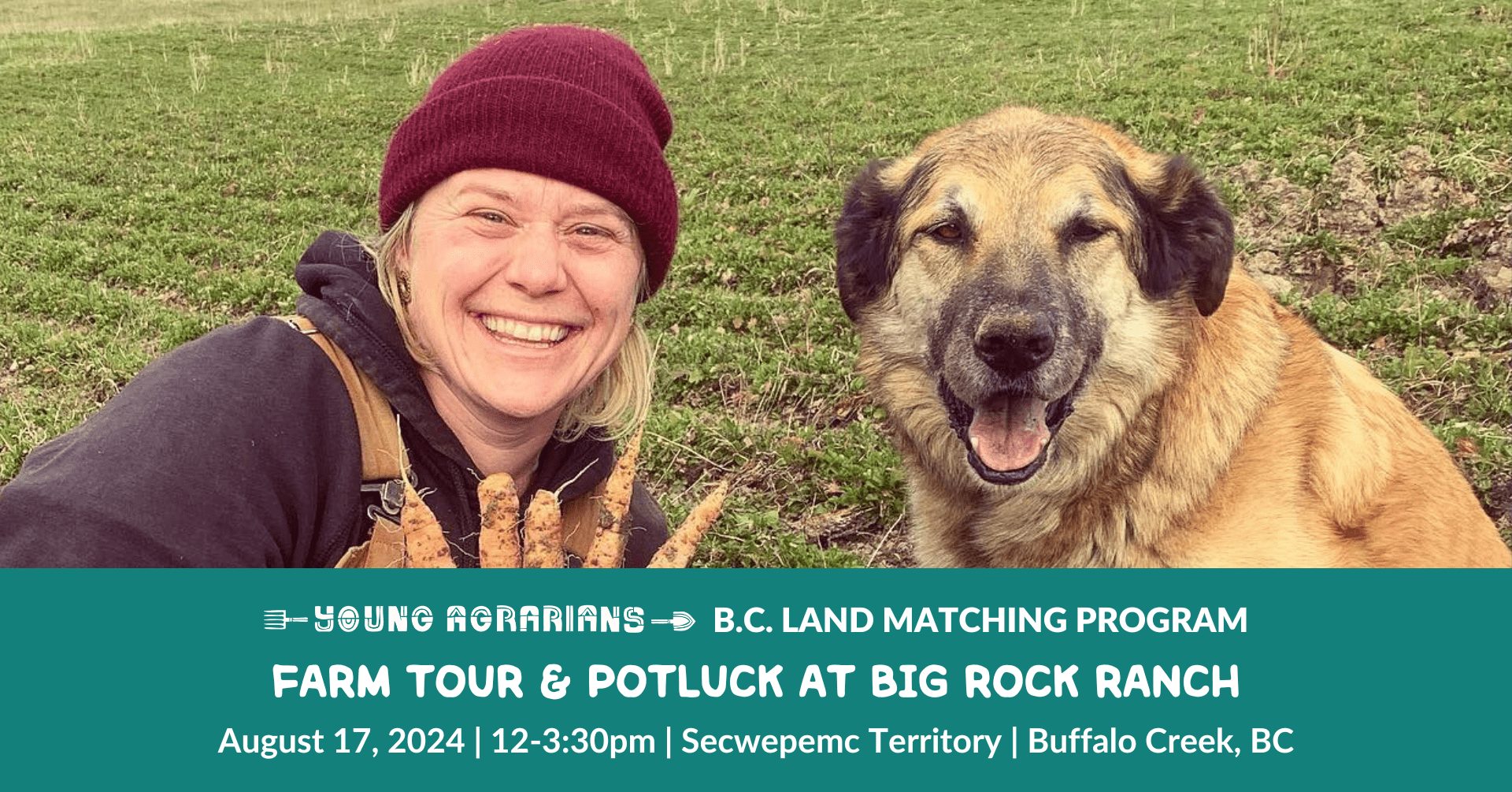 You’re invited to a Farm Tour and Potluck at Big Rock Ranch in Buffalo Creek, B.C. If you’re curious about what land matching and sharing is all about – or just want to check out what your local farmers are up to – join us for the event. Come out to connect with other farmers and food lovers, share a meal, and learn about mixed fruit and vegetable production, beekeeping and raising poultry.