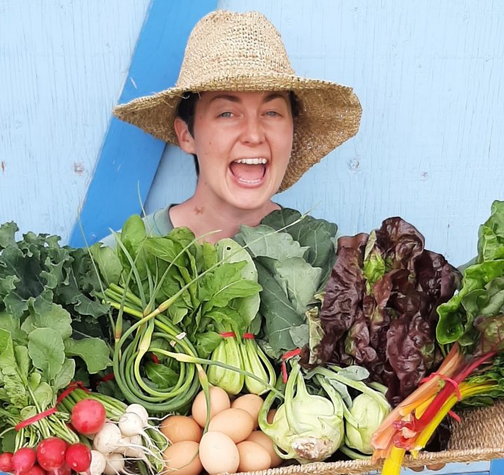 My name is Hannah Lewis and I farm at Grounded Acres Organic Farm, on unceded ancestral Sḵwx̱wú7mesh territory in Gibsons, BC on the Sunshine Coast.