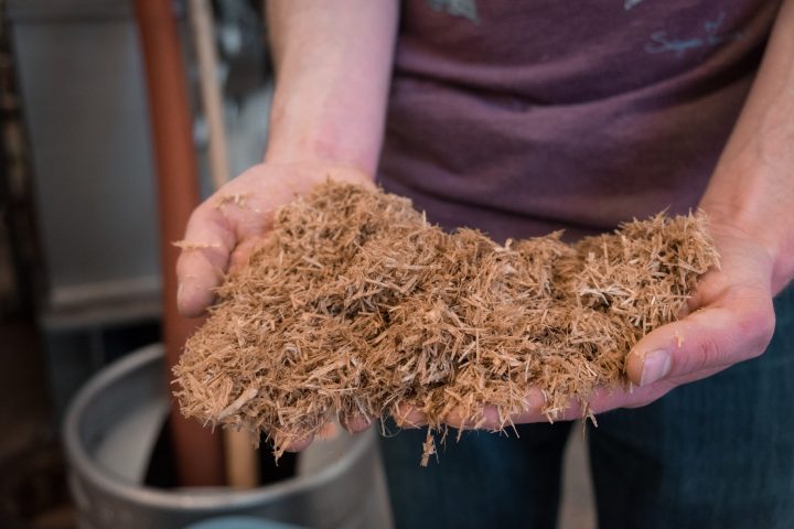 Photo: Alex holds the spent brewer’s grain.