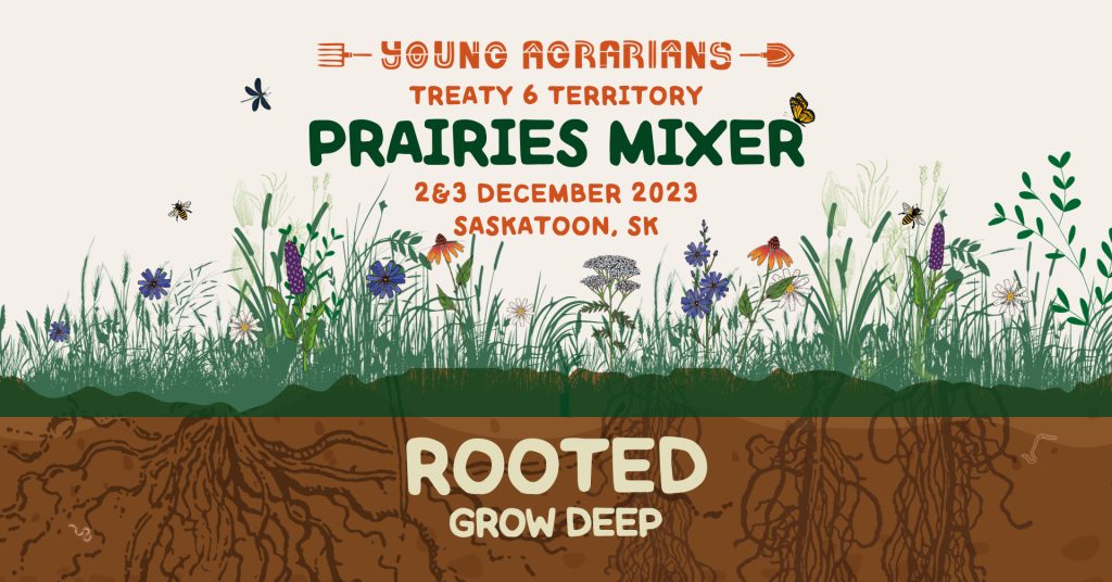 The first-ever Prairies Mixer is happening on Dec 2-3, 2023 in Saskatoon, Saskatchewan Calling all regenerative farmers, food growers, local food enthusiasts, and mixed-grass prairie advocates Join us for a weekend of community building, knowledge sharing, and storytelling! This year’s theme is “Rooted, Grow Deep”, an ode to what remains of the mixed-grass prairie on the