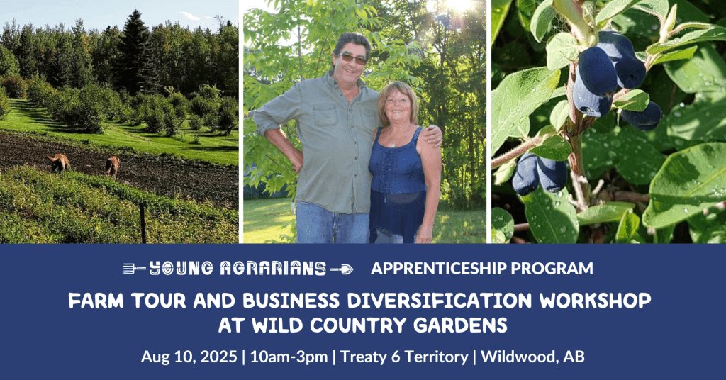 You’re invited to a Farm Tour and Farm Business Diversification Workshop at Wild Country Gardens on August 10th, 2025! Join us for a day of learning, good food, and community connection at Wild Country Gardens in Wildwood, Alberta! Tucked into a scenic forested landscape on Treaty 6 Territory, this unique orchard, garden, and value-add operation