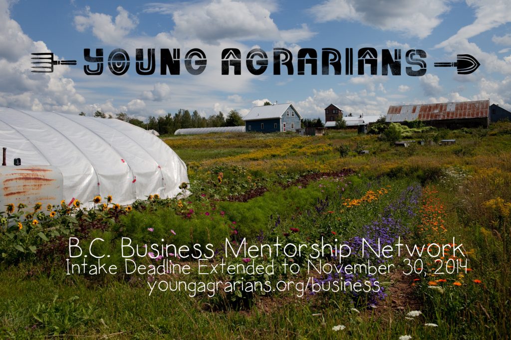 Young Agrarians is offering a limited number of business mentorships to new farmers to support skills development to run ecologically sustainable and financially viable farm businesses. Click here to go the application form. Apply by Sunday, Nov. 30, 2014 Interested in potentially being a Mentor? Email: kristen@youngagrarians.org Program Description Whether you are in need of