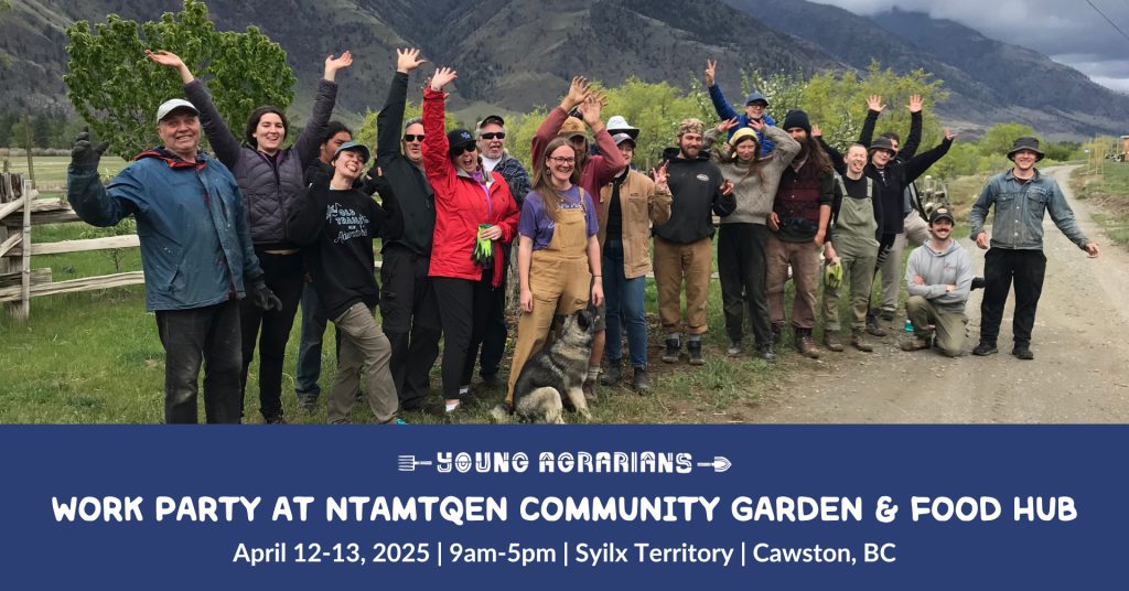 Young Agrarians is excited for a third work party at Ntamtqen Community Garden and Food Hub -formerly the Lower Similkameen Community Food Hub, Farm and Garden! Come out to lend a hand with spring farm work and building infrastructure to grow Indigenous food sovereignty. Everyone is welcome to attend. There are a variety of tasks