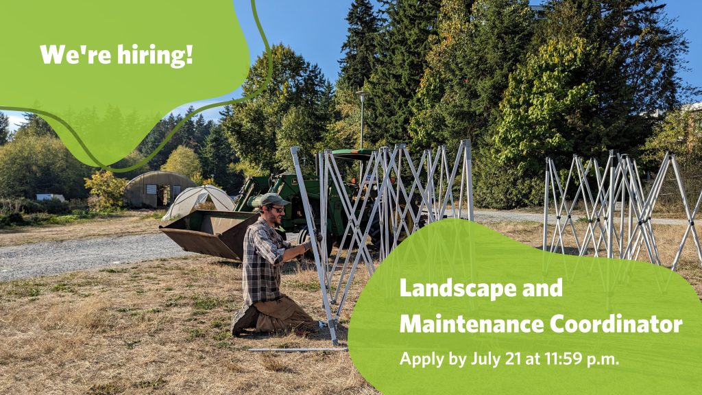 UBC Farm in Vancouver, BC is seeking a Landscape and Maintenance Coordinator! ABOUT UBC Farm Situated within a 90-year-old coastal hemlock forest, the 24-hectare UBC Farm was started by students in 2001 and since then our integrated organic farm and forest ecosystem has become a key part of UBC’s agroecology research and education as well