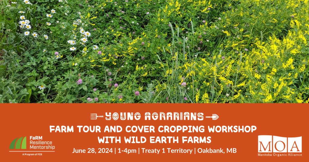 Join us for a tour of Wild Earth Farms where we’ll explore the ups and downs of working cover crops into a vegetable rotation. We’ll discuss the farm’s goals for this particular crop and share cover crop stories. Manitoba Agriculture’s Vegetable Extension Specialist will also be on hand to demonstrate and discuss soil sampling and
