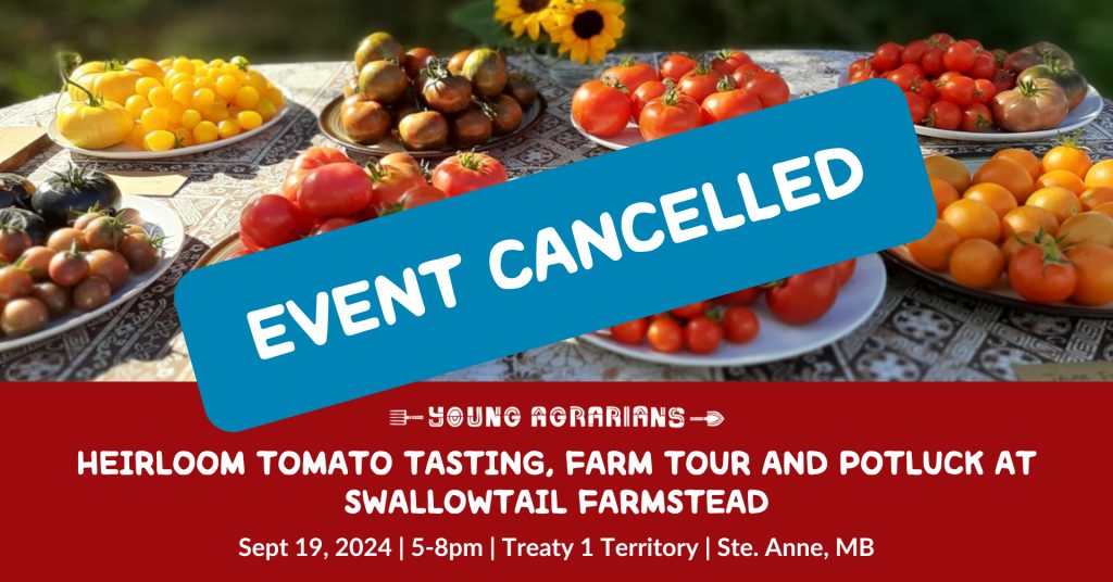 This event has been cancelled due to heavy rain in Southeast Manitoba . We apologize for the inconvenience, and we hope to gather with you soon! You’re invited to an heirloom tomato tasting, farm tour and potluck at Swallowtail Farmstead in Ste. Anne, Manitoba! Swallowtail is a small-scale ecological farm specializing in medicinal herbs, vegetables,