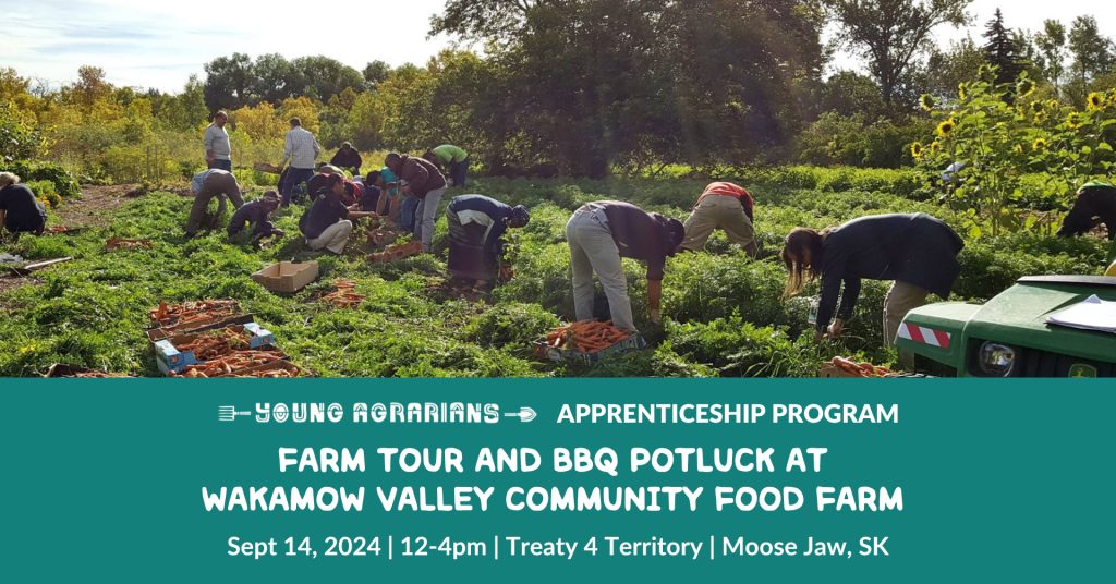 You’re invited to a farm tour and BBQ potluck in Moose Jaw, Saskatchewan! Join us for an afternoon celebrating summer’s bounty at Wakamow Valley Community Food Farm. The Wakamow Valley Community Food Farm is a one-acre garden and orchard that hosts farm tours and educational workshops to help strengthen local food systems and gardening knowledge.