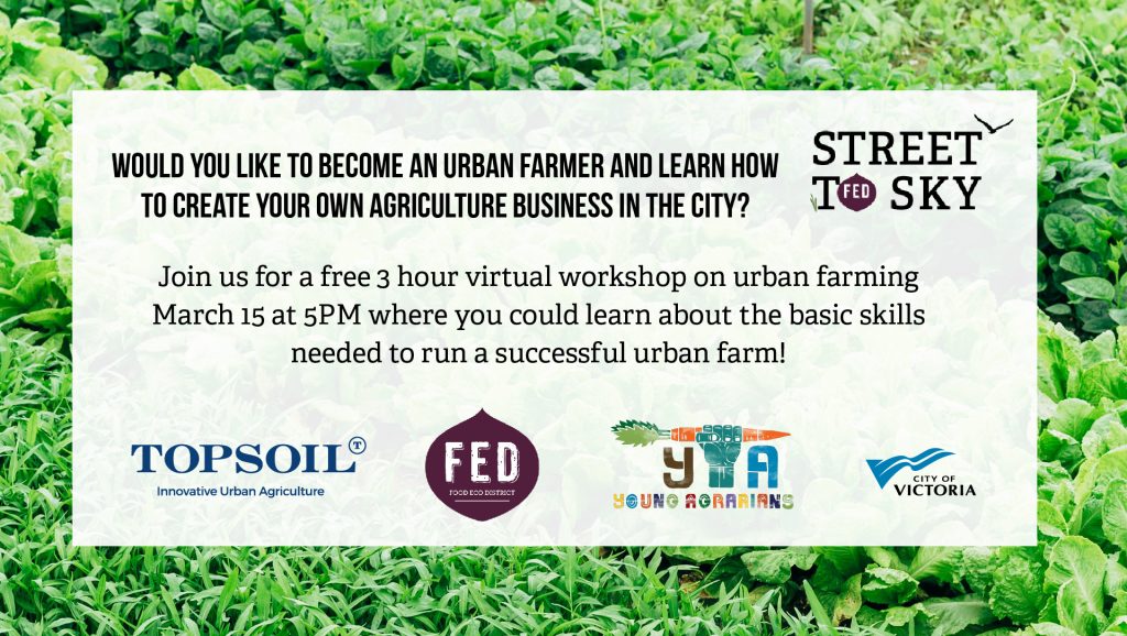 Would you like to become an urban farmer and learn how to create your own agriculture business in the city? We’re excited to bring you this event where you will learn the basics of running your own farming business in an urban landscape! ABOUT THE EVENT Join us for a FREE virtual 3-hour workshop on urban farming