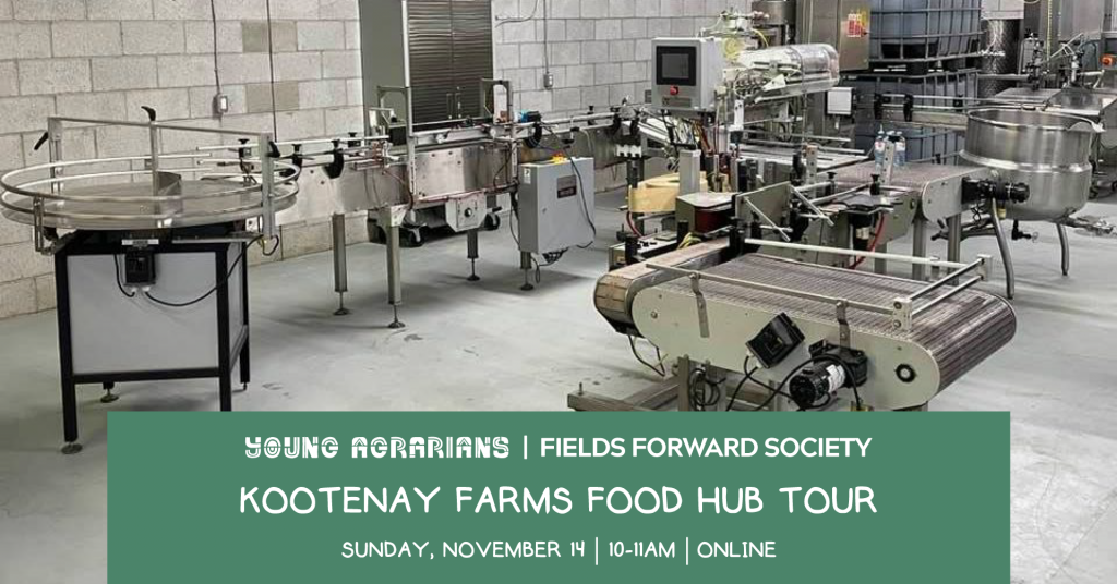 You’re invited to a virtual tour of the NEW Kootenay Farms Food Hub in Creston presented by Young Agrarians and Fields Forward Society. This is the eighth event of the Young Agrarians 2021 Farm Club event series. What is a Farm Club? A Farm Club is when farmers come together to connect and nerd out