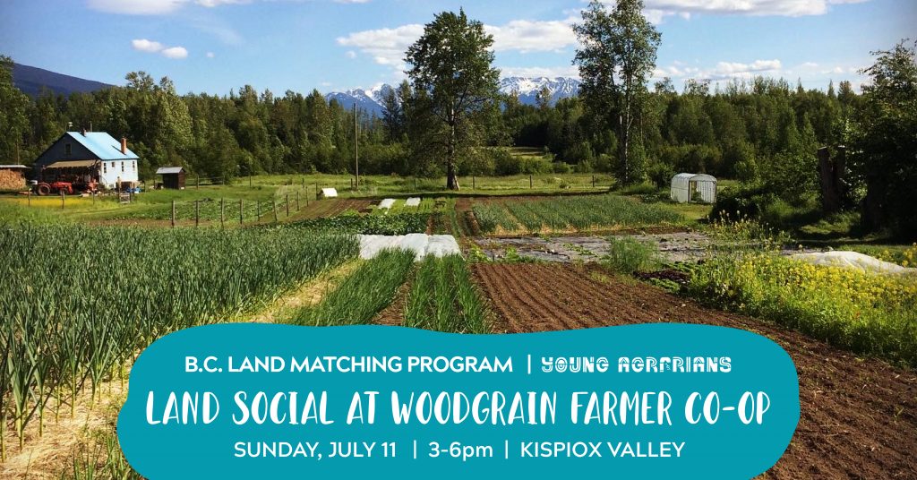You’re invited to a socially-distanced outdoor Land Social at WoodGrain Farmer Cooperative in the Kispiox Valley! If you’re curious about what land matching and sharing is all about, join us for the event. Be inspired and learn about the incredible farming that can be done on leased land! WoodGrain Farmer Cooperative is an organic, full-circle,