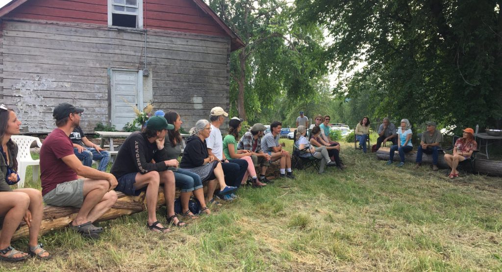The weather was fabulous for our WoodGrain Farmer Co-op Land Social this past Sunday July 11! Nestled in the Kispiox Valley north of Hazelton BC on Gitxsan Territory, 44 attendees and 5 hosts, from as far west as Prince Rupert and as far east as Vanderhoof, gathered to learn about the B.C. Land Matching Program