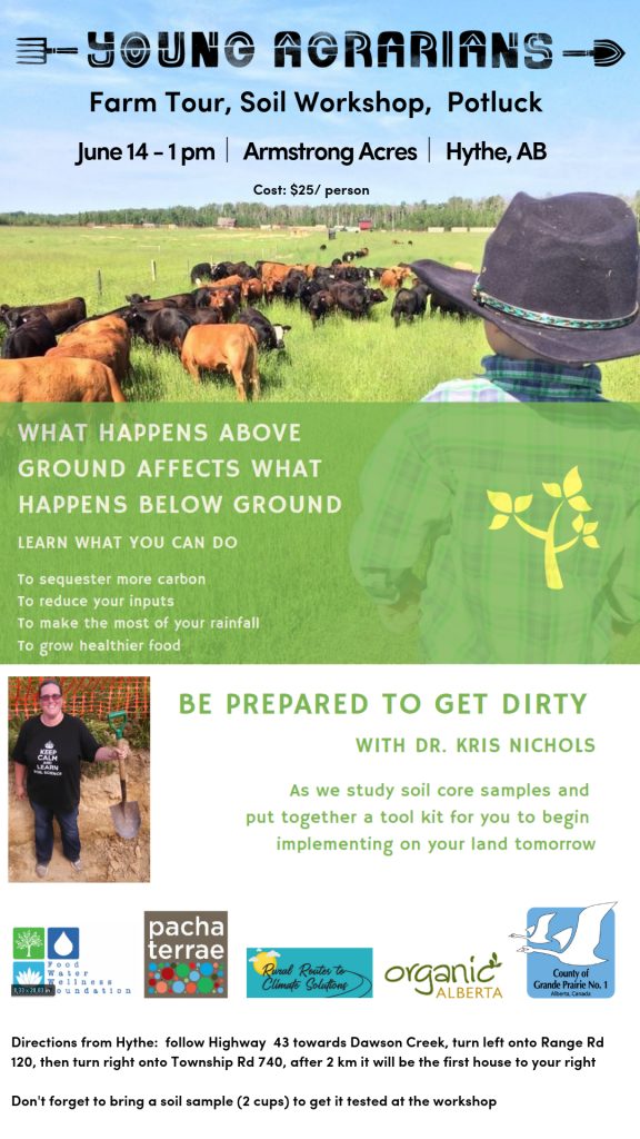 Soil Workshop with Dr. Kris Nichols & Farm Tour at Armstrong Acres Join us for an afternoon at Armstrong Acres to check out how Clay and Ash apply rotational grazing, see their the pastured poultry operation and much more. Followed by a workshop about soil health with Dr. Kris Nichols. When: June 14, 2019 Where: