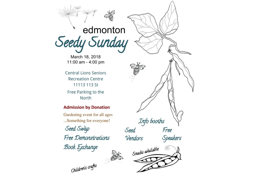 What day is Edmonton Seedy Sunday this year? March 18th, 2018 from 11 am to 4 pm. Where is Edmonton Seedy Sunday held? Central Lions Seniors Recreation Centre – 11113 113 St NW, Edmonton, AB. Free parking at the north end of the building. Wheelchair accessible How do I get there? Click here for: ETS