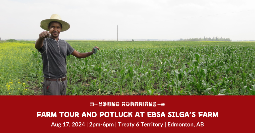 You’re invited to a farm tour in Edmonton, Alberta! Come for the tour followed by an Oromo BBQ and potluck at Ebsa Silga’s farm. Join us for an afternoon of connecting and learning about how Ebsa Silga’s farm is growing nutritious and delicious food for the Oromo community from Ethiopia. See all the beautiful field