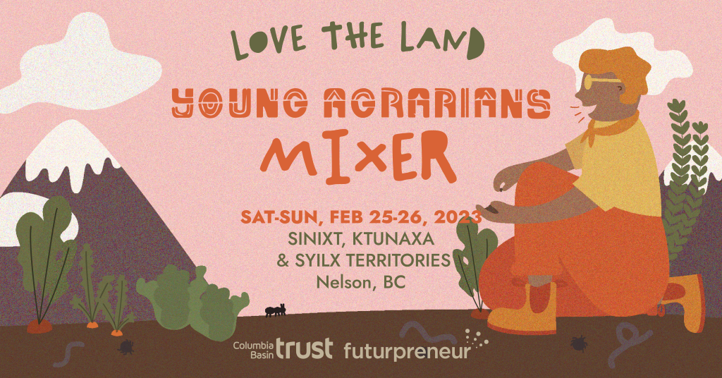 Calling all new and young farmers, the farm curious and food growers! Thank you for growing food and farming. Join us to connect, dialogue, eat, workshop, and celebrate the hard work of the growing season with two days of networking and sharing at the Columbia Basin Mixer! We will gather from across Sinixt, Ktunaxa and