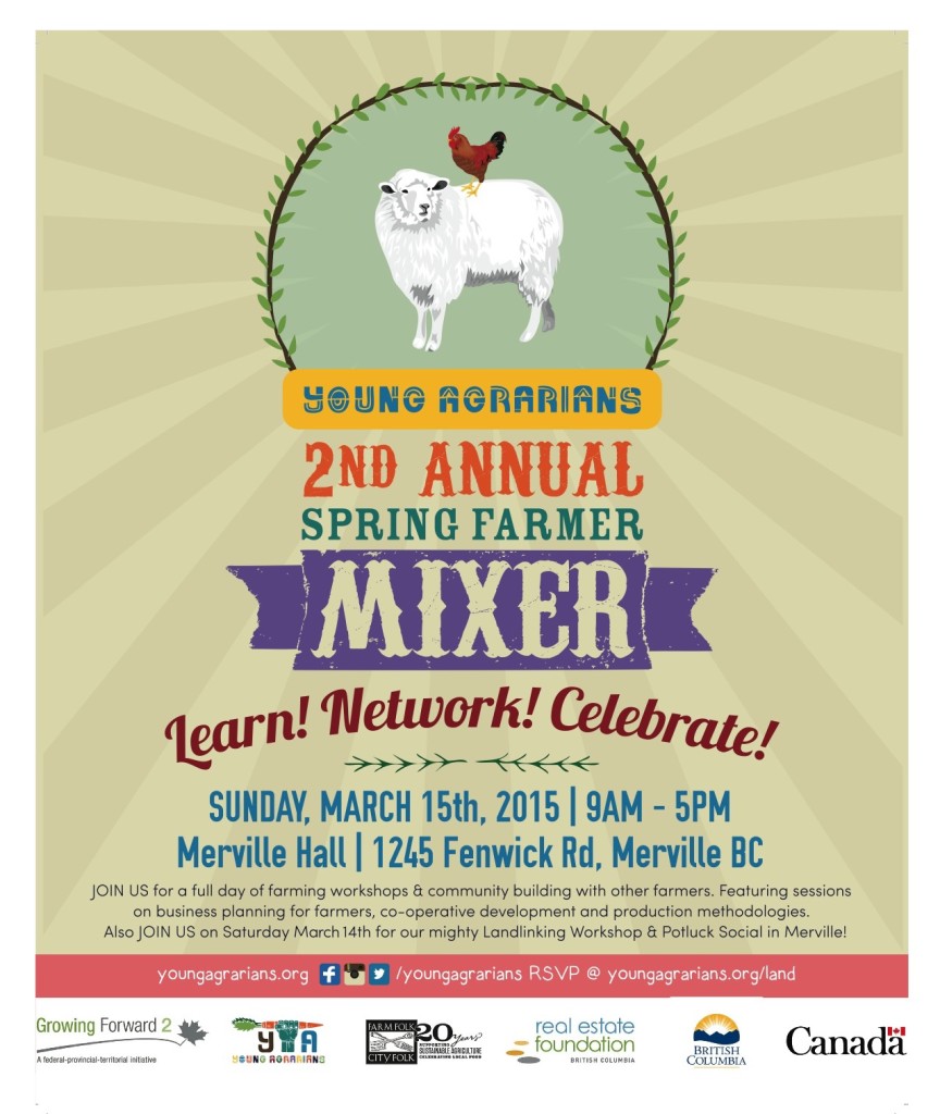 Land Linking Session and Farmer Social – Comox Valley Saturday, March 14, 2015, 1:00-9:00PM, Merville Hall REGISTER (Free) for Comox Valley Land Linking here: http://landlinkingcomoxvalley.brownpapertickets.com Want Land? Got Land? Are you a farmer looking for land? Are you a landowner looking for farmers? We Want You! Join us for a workshop on the nuts and bolts