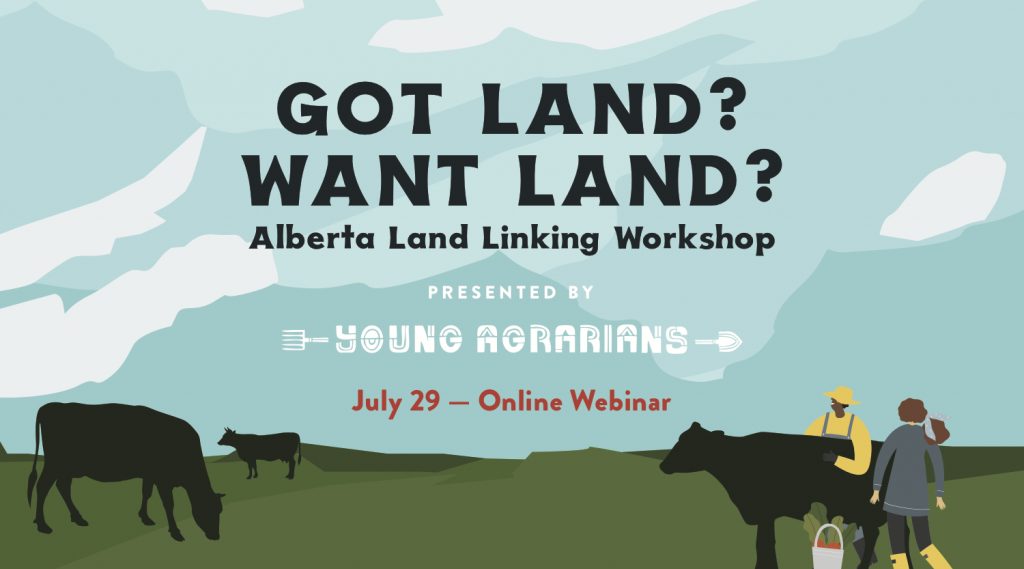 This online workshop will bring together landowners and new farmers in Alberta to explore the land-linking process, learn about different land agreement options and get tools to find the farmer or farmland for you! Date: Wednesday, July 29, 2020 Time: 6:30–8:00pm Format: Online webinar by video conference & teleconference. Details to be provided upon registration.