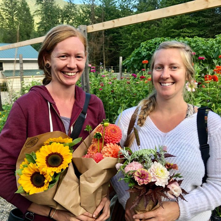 With three full-time employees working with them, they currently have a subscription membership of 225 people who receive their gorgeous and uniques bouquets every week through out the growing season. Apart from their farm gate sales, subscriptions and online dahlia sales, they also sell their flowers through local grocer Ferraro Foods in Rossland and Trail, with multiple deliveries every week.
