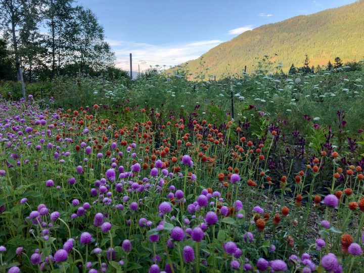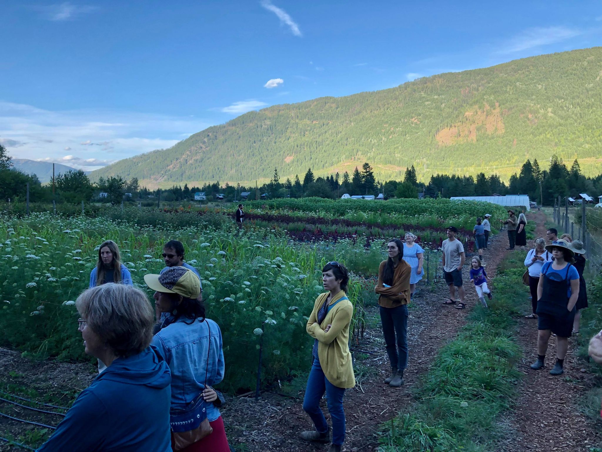 Thank you to our hosts and the thirty people from around the Central Kootenay who joined us for a lovely late summer evening farm tour at Stone Meadow Gardens in Tarrys, BC (between Nelson and Castlegar) on August 28th, 2021! Farmers and friends gathered to enjoy the fresh air and sunset on the most colourful speciality cut flower farm around.