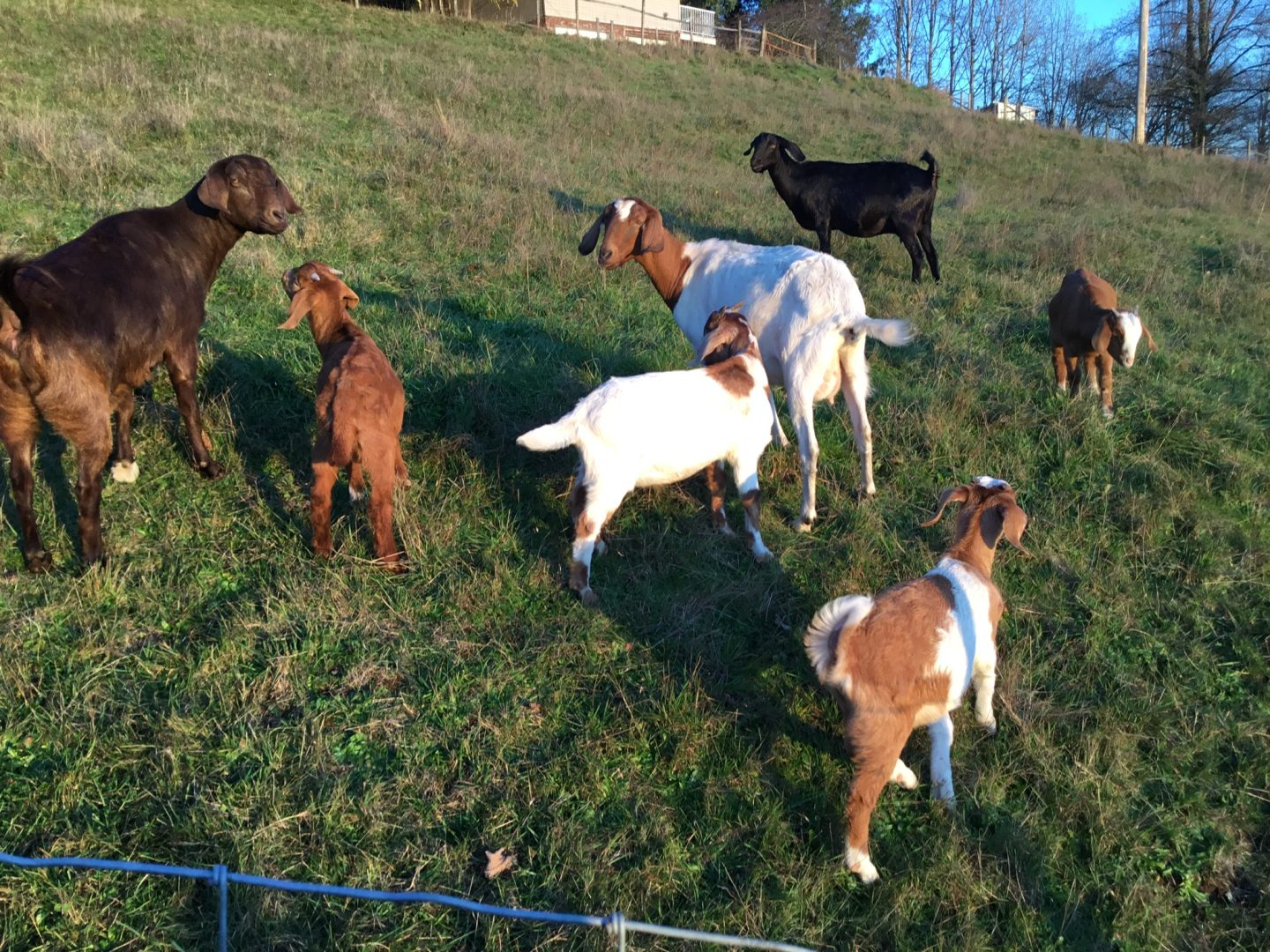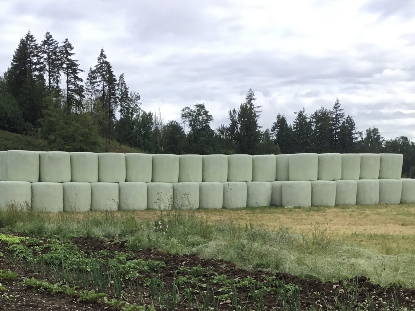 Hay Custom round baled. Large organic garden. Meat goats. 3 acres of Raspberries.