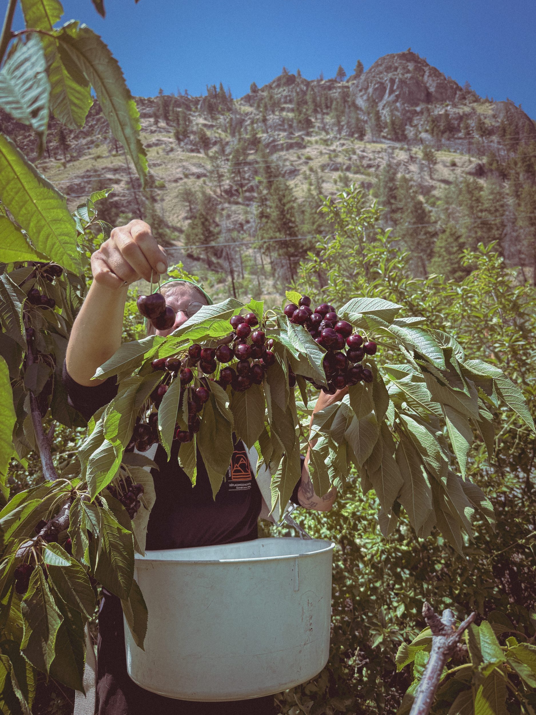 Snowy Mountain Farm is a 25 acre organic farm located 10 minutes south of Cawston, BC. The setting is picturesque and quiet, sitting at the foot of Snowy Mountain and within walking distance of the Similkameen River, great for cooling down on hot summer days. We have 12 acres of mixed orchard and 4 acres of vineyard. We grow a diverse collection of new and heritage varieties of cherries, apricots, nectarines, peaches, plums, pears, apples, quince, and wine grapes. Most of the work on the farm is done by hand, though we do use a tractor and some tractor implements when necessary. We sell our fruit at Vancouver farmer’s markets and restaurants, as well as provide the fruit for select CSA’s in the lower mainland.