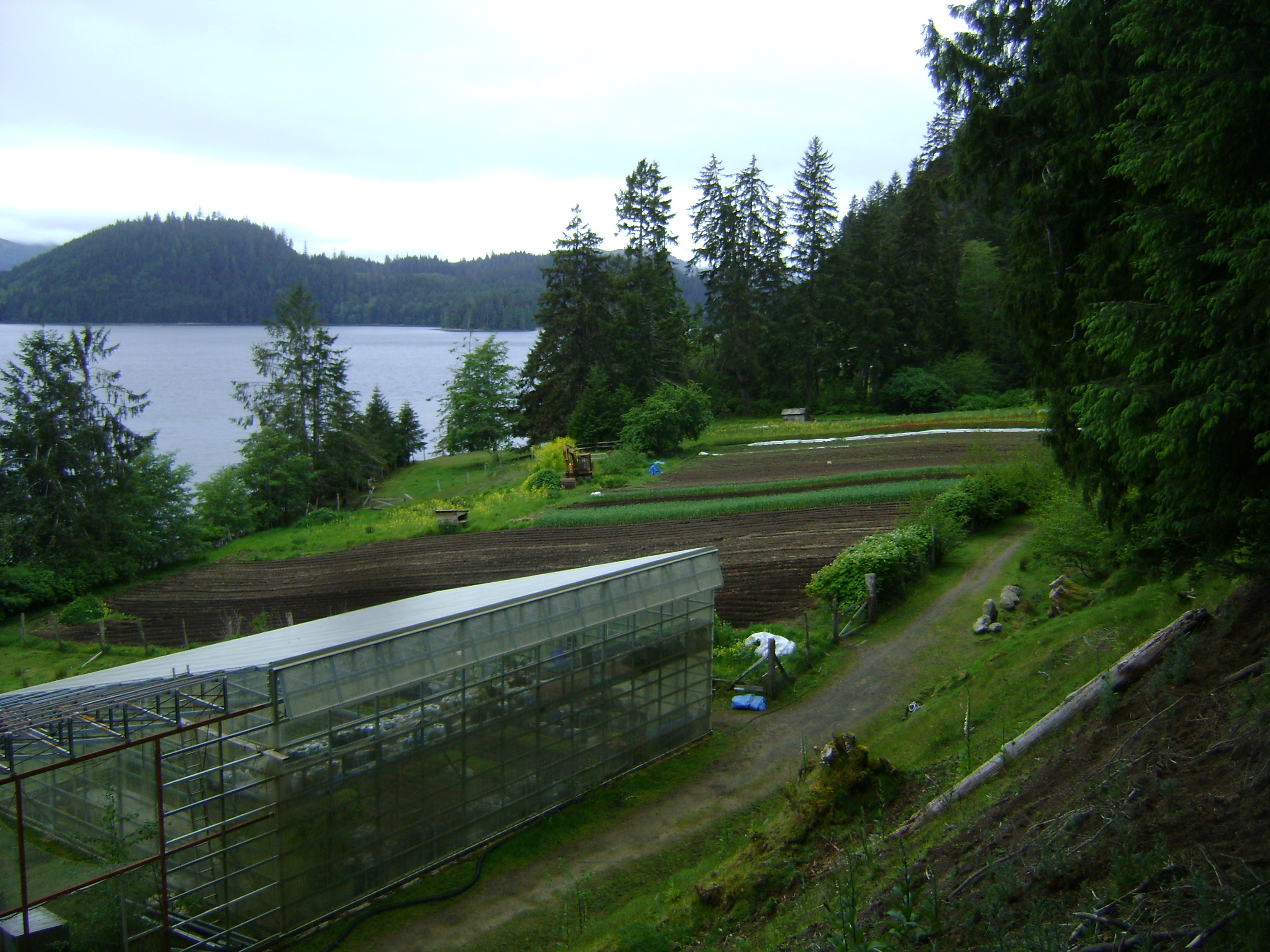 We are located on remote Maude Island (population 2-5) situated in Skidegate Inlet, Haida Gwaii, about a 20 minute boat ride from the town of Daajing Giids (formerly Queen Charlotte). The farm is located on the south facing shore with beautiful views of Moresby Mountain. We rely on the farm boat to get to town, which means that living on Maude takes a hearty and resilient person who likes nature and does not need to be near a town.