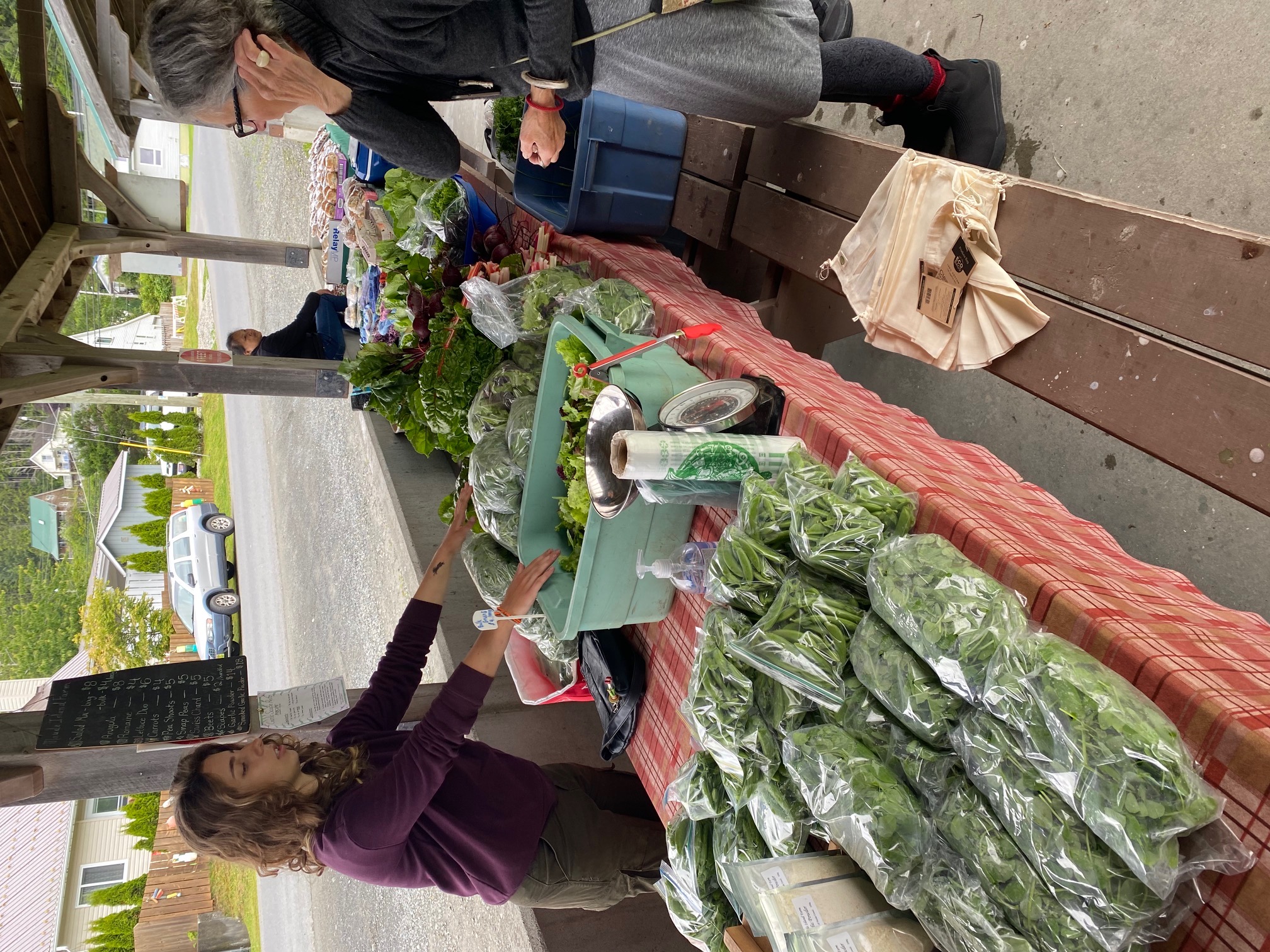 We do two major harvests per week, one for the Saturday Farmer’s Market in Daajing Giids, and then another for the CSA on Wednesdays which we deliver to about 40 customers. We also supply the local health food store and numerous restaurants and tour operators.