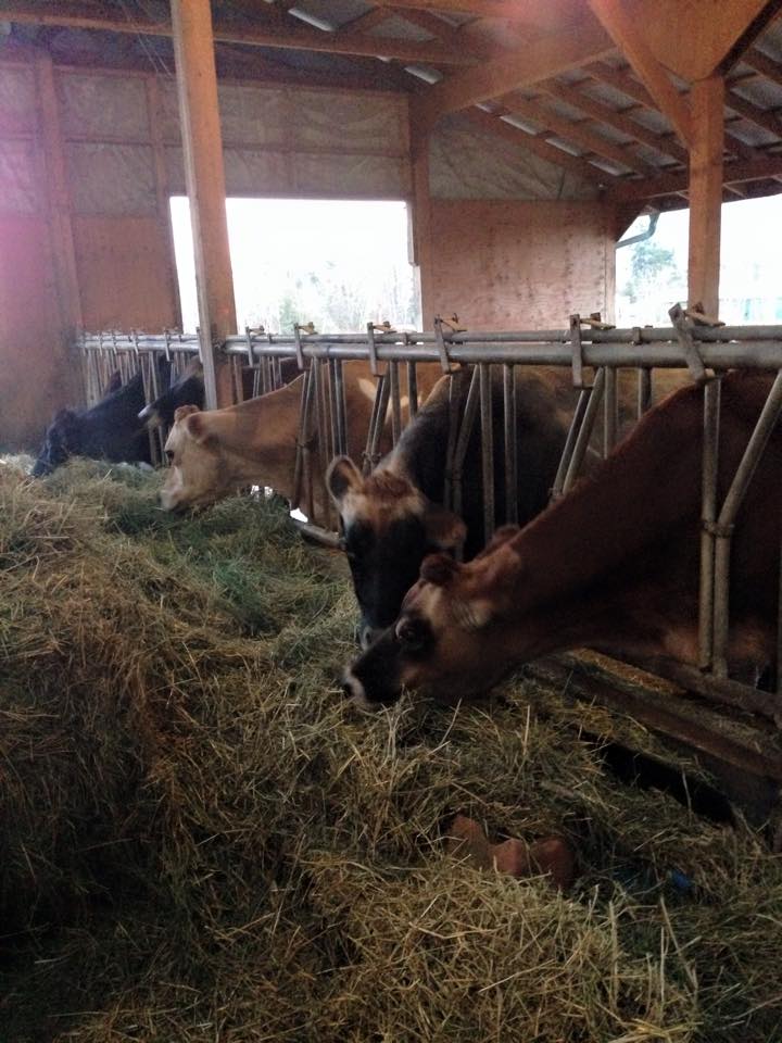 We have an 8 acre farm in Cowichan Station. We keep a small herd of milking cows, all heritage breeds including Jerseys, Ayrshires, Brown Swiss and Guernsey crosses. The cows are on pasture most of the year and have access to the outdoors at all times.