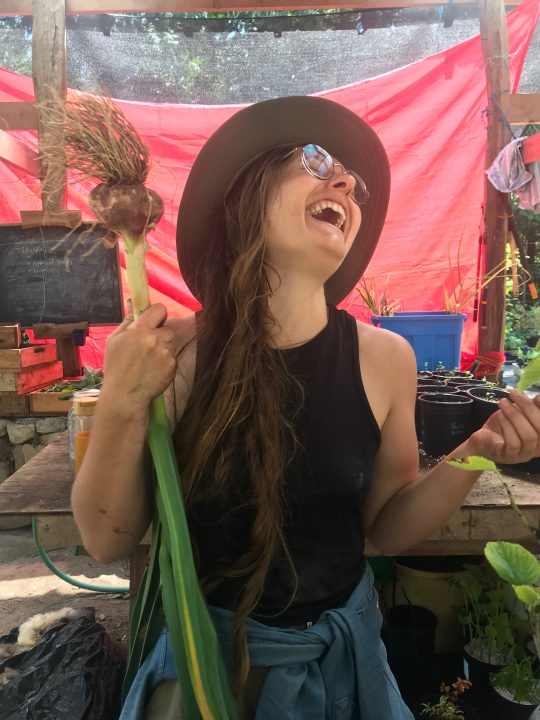 Em laughing with garlic