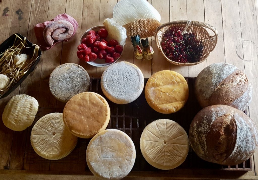 We currently raise grass-fed cows, pastured pigs, and free-range chickens for eggs and meat. We milk a couple of dairy cows, and grow annual and perennial gardens for our fruits and vegetables. In trying to keep nutrient and life cycles continuous on our farm, we grow the grain for the pigs and chickens on farm, and grind some of it into flour for ourselves. The hay that our cows and horses require in the winters is from Wildwood pastures. We have a small apiary and tap birch trees to add a touch more sweetness to the farm.