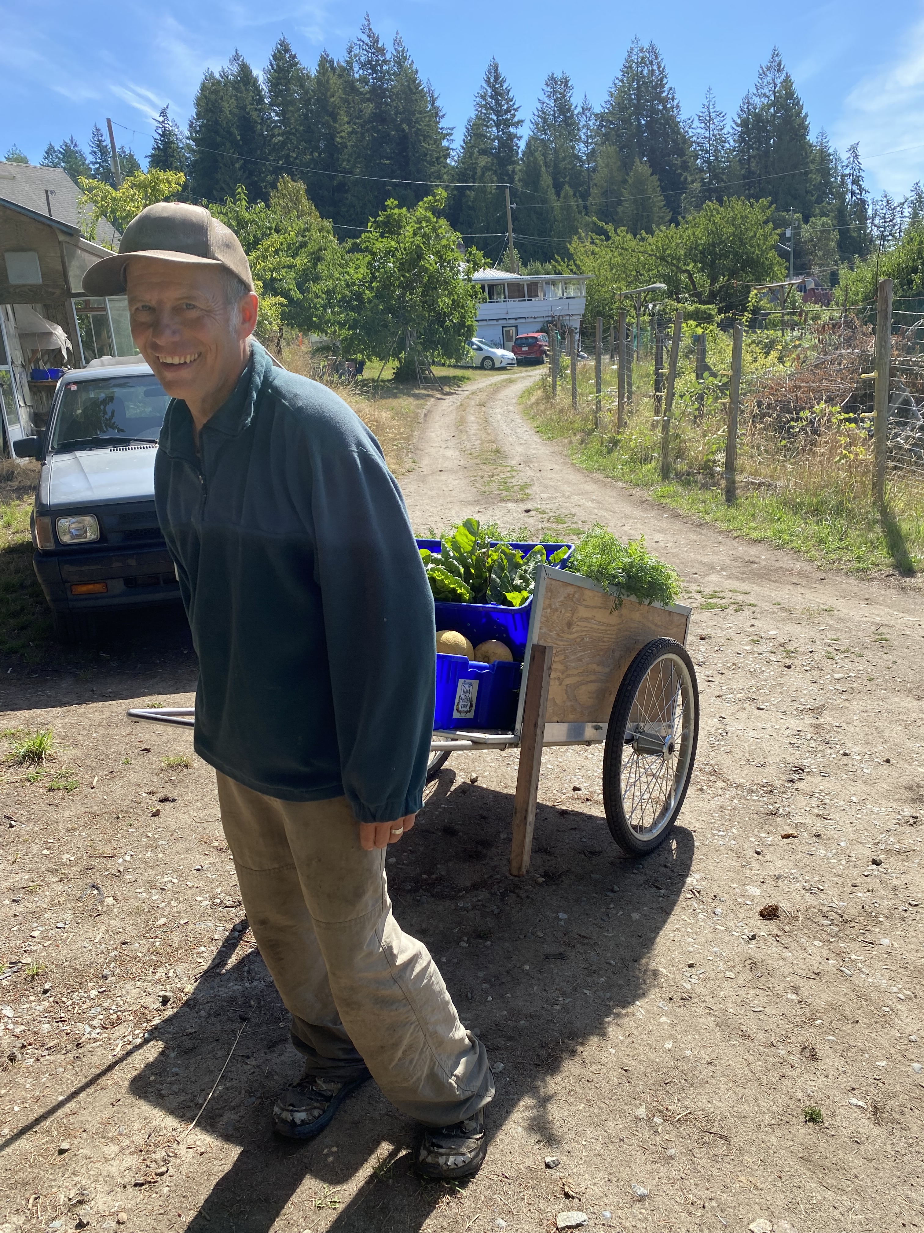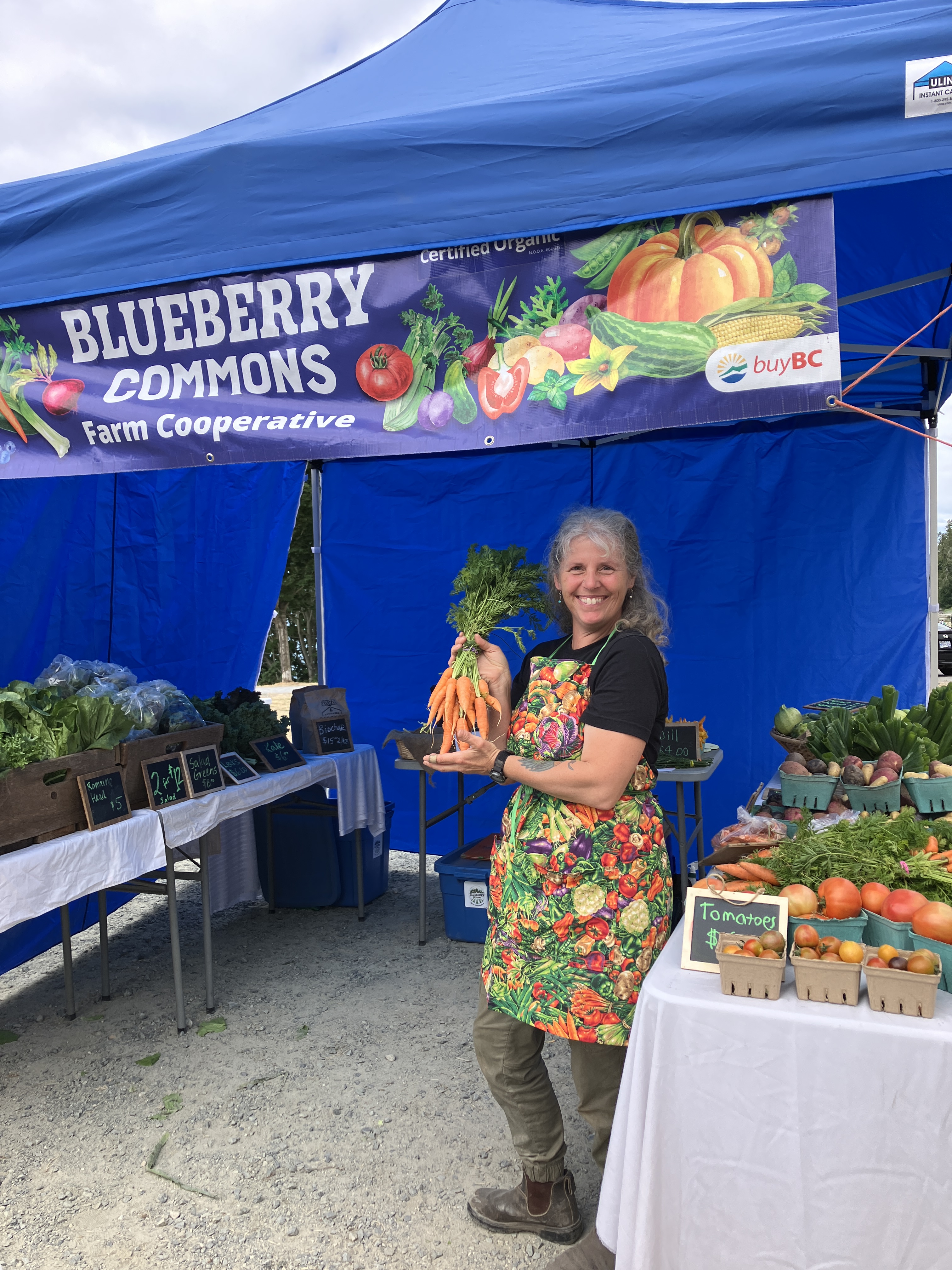 Blueberry Commons is located in Tla’amin territory in the semi-rural neighbourhood of Wildwood in Powell River, BC. We are on 16 acres of beautiful land with a mix of forest, field and meadow where we abut extensive coastal Douglas-fir forest. We have two acres of vegetable production (with over 40 different crops), an acre of blueberries, many fruit trees, other berries and more being introduced, a developing willow hedge, herb and food forest garden, and two – soon to be three – greenhouses. We have a few workhorses: small kubota tractor with bucket and a few different attachments (flail mower), a walk-behind tractor for low-till bed preparation, but otherwise most of our machinery /tools are battery powered, or hand operated. We market our produce through farm stand sales (rebuilt last year), farmer’s markets (at the height we’re going to 3 weekly markets including to Savary Island), U-Pick events, direct sales to local retailers and this year we are excited to be part of a weekly collaborative food box pilot program.