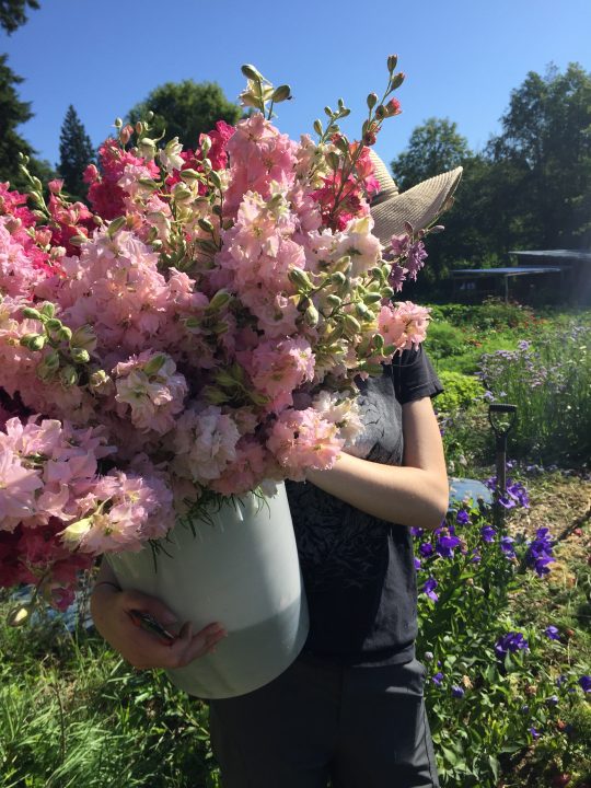 We are a small farm in South Surrey BC sustainably growing vegetables and flowers. We run a weekly on-site farm market, do roadside sales as well as farmer’s boxes and restaurant sales. We cultivate about an acre of vegetables and a quarter acre of flowers. Our main flower farming focus is market bouquets so we grow lots of variety and are planting successions throughout the season.