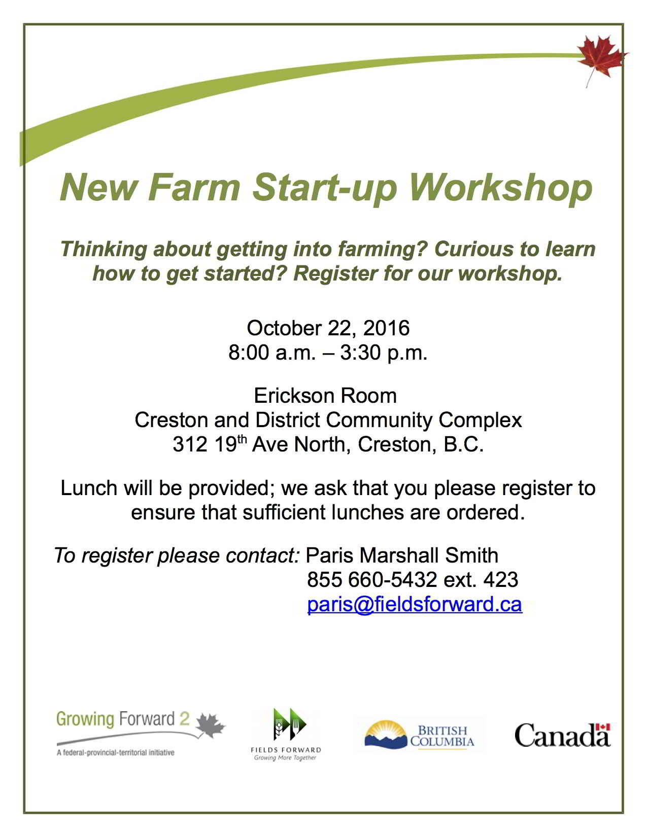 Registration required: paris@fieldsforward.ca