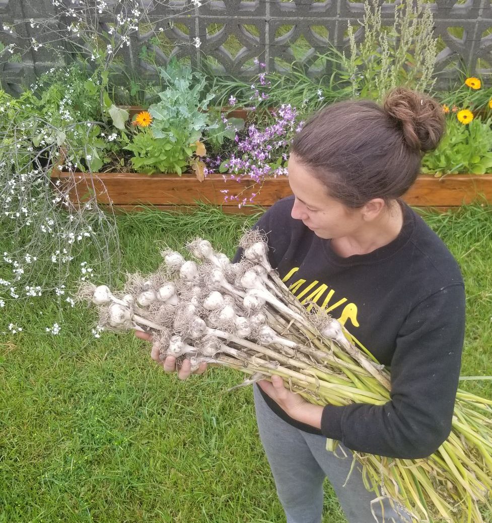 We’re thrilled to be working with young farmer Ruth, born and raised in Barcelona, Catalunya who moved to Canada 13 years ago and has landed in Prince George, BC. She currently has a 1/4 acre garlic crop (and a newborn!) on leased land she found with support from the B.C. Land Matching Program.