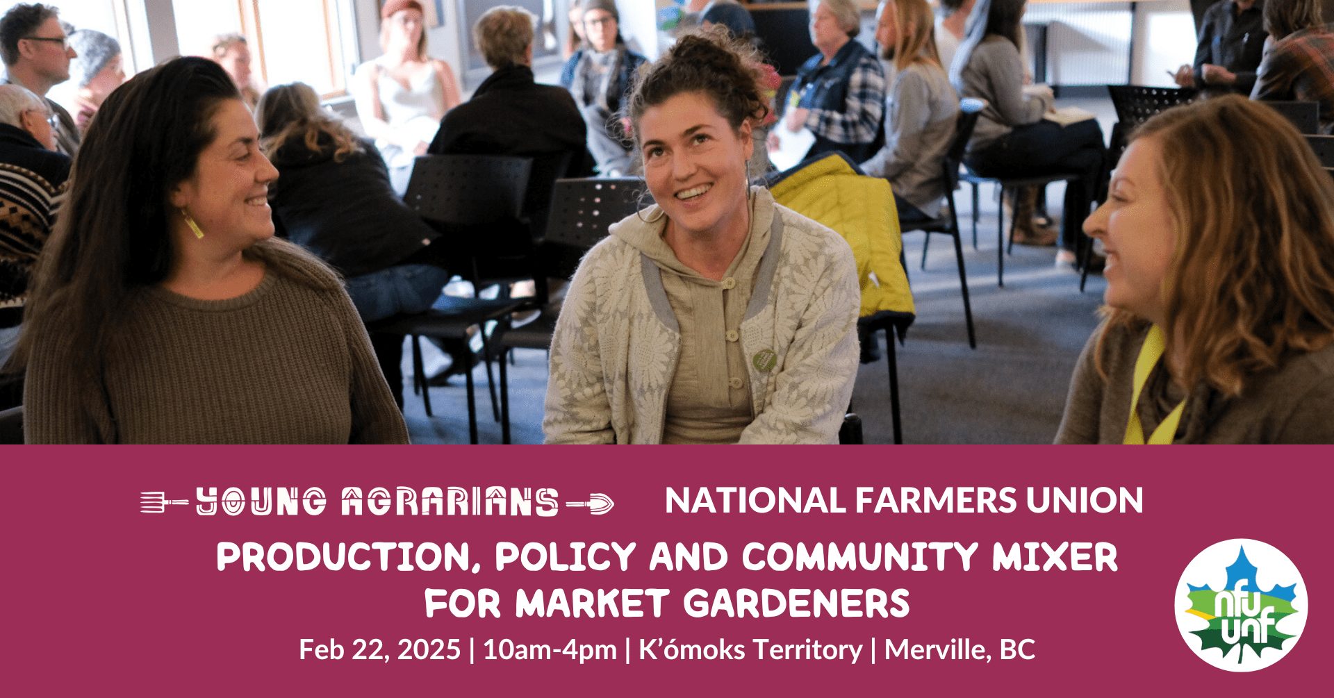 Calling all market gardeners! You’re invited to a Production, Policy and Community Mixer on Saturday, February 22 in Merville, BC. This event will be co-hosted by Young Agrarians and the National Farmers Union (NFU), a direct-membership, farmer-led organization that has advocated for food systems rooted in social and economic justice as well as agroecology and international agrarian solidarity since 1969.
