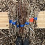 - Label your cuttings clearly. Be sure that you are 100% certain of the variety you are collecting before labelling. If you don’t know the variety, you can write a general description of the variety (growing habit, bloom time, fruit qualities, harvest time, any interesting history) and why you think others should grow it. Wrapping bundles of cuttings painters tape is a good way to keep them all organized and clearly labelled.