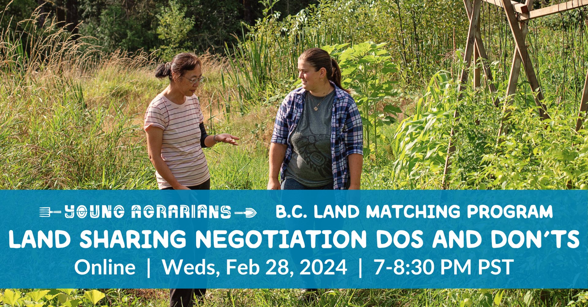 Questions about this event, or about the B.C. Land Matching Program? Reach out to our BCLMP Coordinator, Kat, at bclmp@youngagrarians.org.