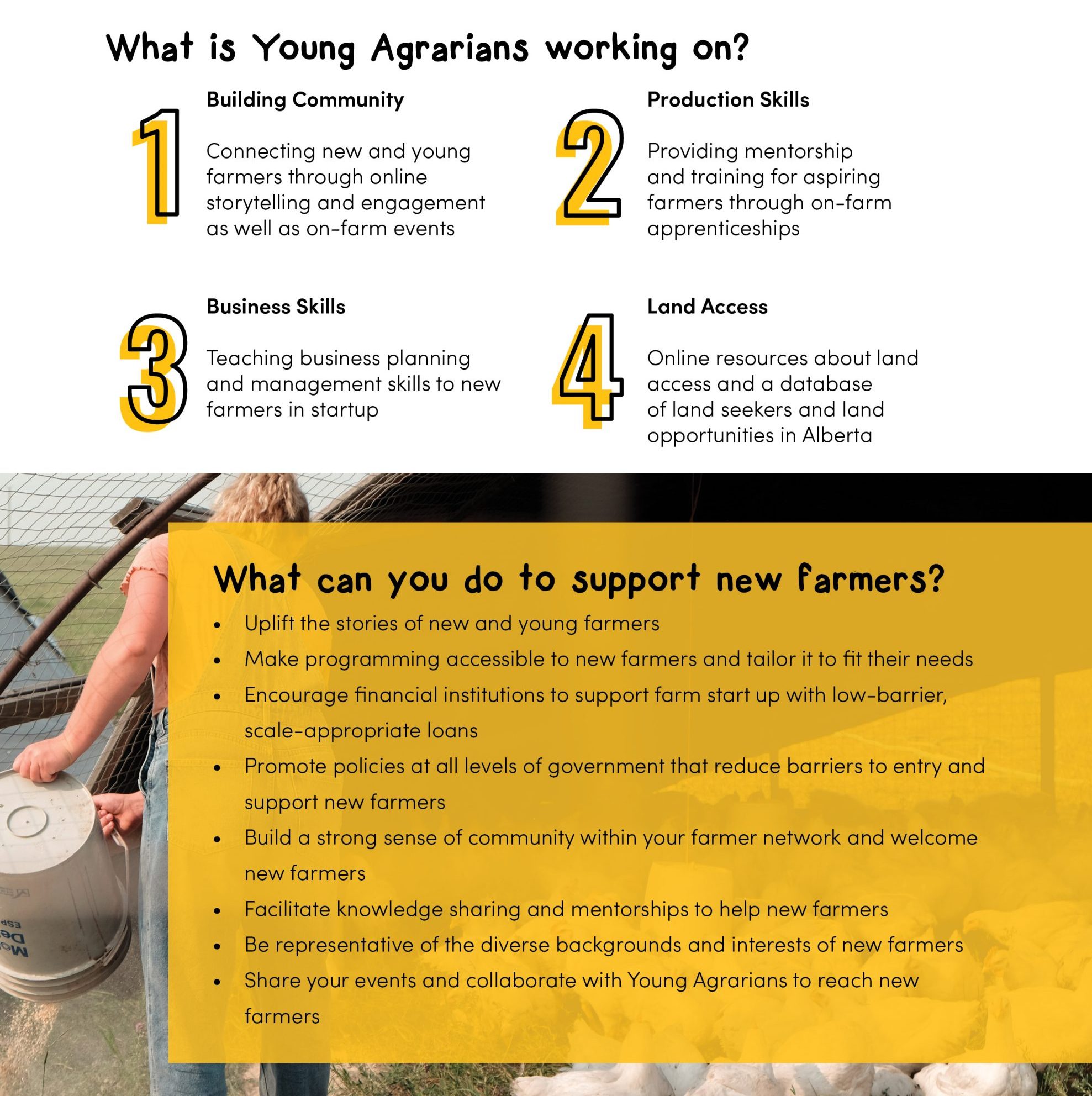 We’re looking for people to advise us on the next steps to support new farmers in Alberta. Reach out to Alex at alex@youngagrarians.org.
