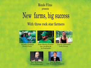 New Farms, Big Success presents three amazing, ecologically responsible farms in the USA and Canada. Their unique business plans eliminate the middle man, use sustainable methods and few fossil fuels and show a decent living can be made! This documentary provides critical information to develop an enduring, local food network in a time of climate change. This documentary includes the official point of view of The Convention on Biodiversity, the UN office specialized in the protection of life on Earth, about the links between climate change, biodiversity and farming.