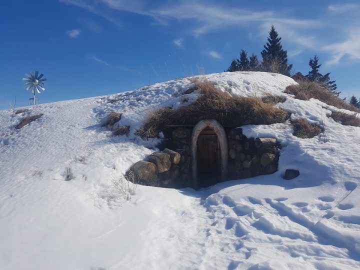 Currently, Wildwood raises grass-fed cows, pastured pigs and free-range chickens for eggs and meat. The farmers milk a dairy cow in addition to growing annual and perennial gardens for fruits and vegetables. In trying to keep nutrient and life cycles continuous on the farm, they grow as much of their own grain and hay for their pigs, chickens and cows as possible (given drought conditions), while also grinding some of the grain into flour for themselves. The farm buildings have all been crafted using as many local materials as possible, often sourced from the forest on their land or from forests nearby. Wildwood also uses a small solar array to supply their power needs. Finally, the farm has a cemetery association and a legal, private “green” cemetery on their farm to honour the continuity between life and death on the land.