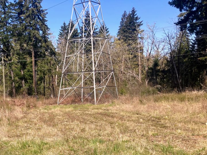 Approximately 1 acre of the property sits underneath the BC Hydro transmission lines, with one tower in a corner of the field. Otherwise, the ground is open and clear. BC Hydro has the right of way to maintain the tower, but it is mostly left untouched.