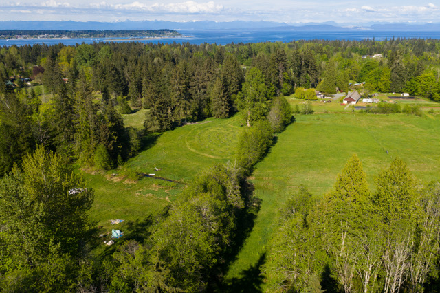 This 22-acre Royston property is quiet and surrounded by forest, yet only 10 minutes from downtown Courtenay. 10-13 acres of pasture is available for lease for rotational grazing of livestock. The field has only been hayed in recent years. Drainage is good throughout most of the field and animals can overwinter here. Most of the field’s perimeter is fenced with barbed wire, and electric fencing could be used to fence portions of the field at a time.