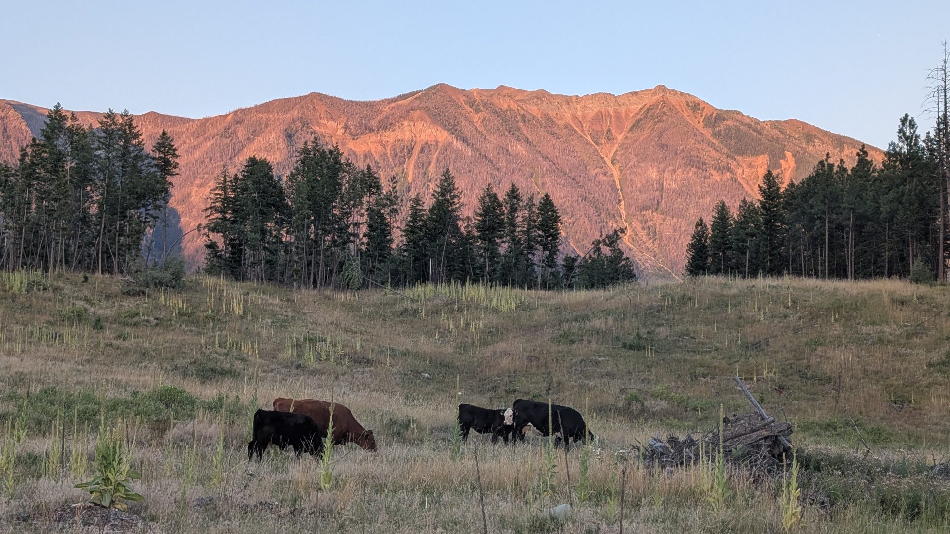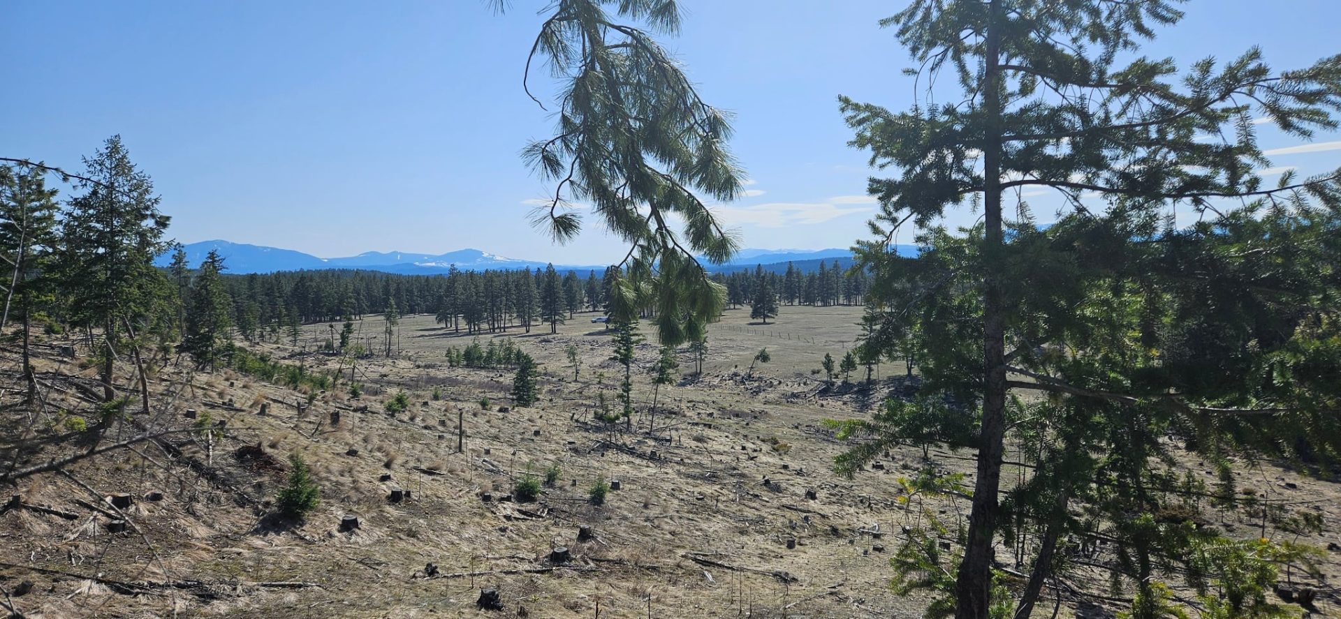 The landscape is predominantly grassland with few invasive plant species, and the pastures are healthy and can provide high-quality grazing. Most of the ranch was logged five to seven years ago; the remaining forest cover consists primarily of understory and regeneration layers of Douglas-fir and ponderosa pine, along with a small number of established trees.