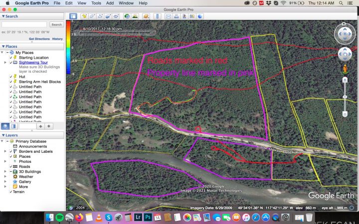 The land is largely forested up the hillside above the Slocan River, with a few opening on the benches above for farming. There is a new road into the top 45 acres of the property where the benches are located. This property requires an AWD vehicle to access in the winter months if needed.