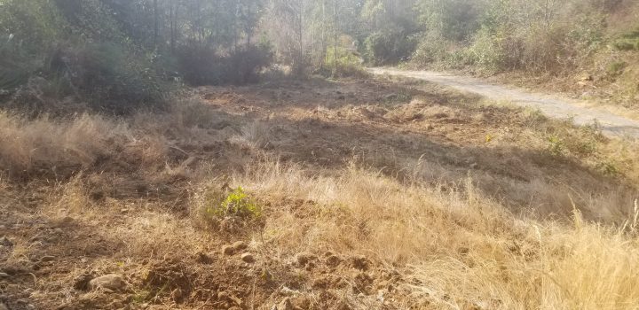 The property is mostly forested with just a few small cleared areas. The available space has not been farmed but was cleared several years ago and then left unmanaged. Blackberries, broom, thistle etc have grown back in the space and need to be cleared again (update: cleared in October 2022). The exposure is good, especially for afternoon light, as there is some forest to the southeast. Access is via a driveway running along the northwest side of the space.